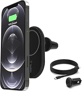 Amazon.com: Belkin MagSafe Compatible Car Phone Magnetic Charging Mount, Air Vent Phone Holder and Charger for iPhone 13, 12, Pro, Pro Max, Mini (power supply included) : Everything Else