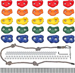 Amazon.com: Jungle Gym Kingdom Rock Climbing Holds for Kids - Indoor & Outdoor Rock Wall Climbing Kit with Mounting Hardware, Knotted Rope and 25 Handles - Playground Accessories : Sports & Outdoors