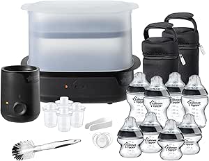 Tommee Tippee Complete Feeding Set, Super-Steam Electric Steriliser, Baby Bottle and Food Warmer, Baby Bottles and Accessories, Black : Amazon.co.uk: Baby Products